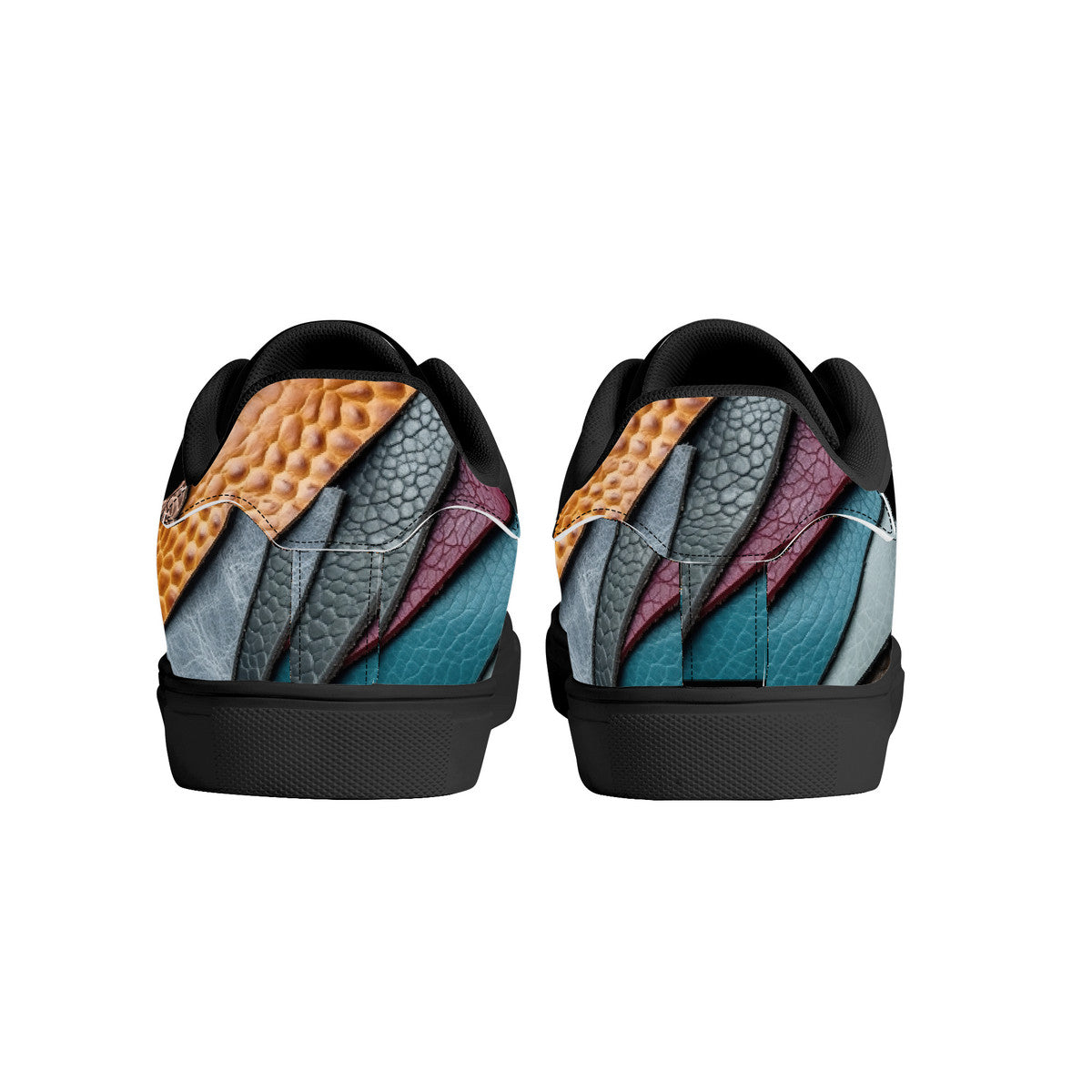 - Soft rubble soles for all over printing low top synthetic leather shoes