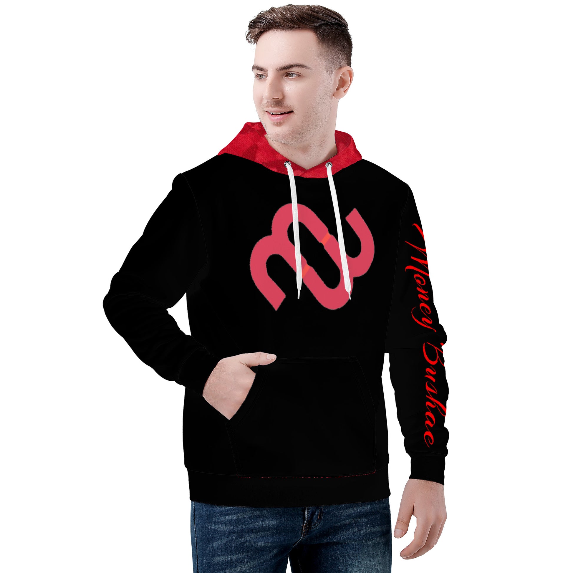 Money Bushae D55 Men's All Over Print Hoodie black and red